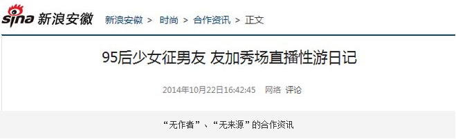 大约从昨天下午4点半开始,就有媒体以“95后少女征男友 友加秀场直播性游日记”为标题发布了明显是营销“软文”的“新闻”。