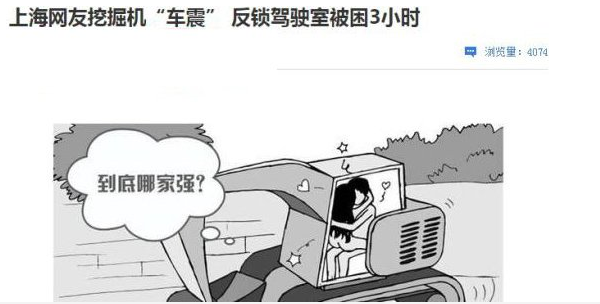 本月14日,有多家媒体发布了“上海警方普陀某派出所接到举报,有一对青年男女在挖掘机内‘车震’被困”的“新闻”。“新闻”中写道,“21岁的小李是苏州人,前两年毕业后来到上海打拼,目前在一家金融机构上班;19岁的小杜则还是在校的大学生,因为外表靓丽故而时常兼职做一些模特工作。两人通过一款名叫友加的社交软件认识,在网上交流了几个月后,认为是时候将关心从网上发展到现实中,于是便有了之前的一幕。”