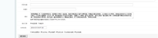 描述:此项为SEO项目,为本页面设置描述,不填写的话就自动调用内容的一部分