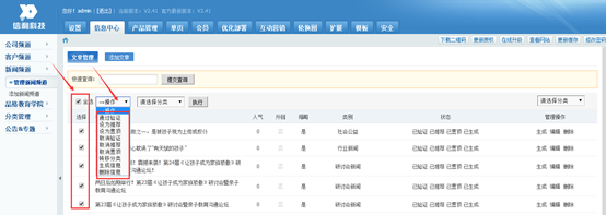批量删除文章:勾选文章 点击 操作 删除信息 执行即可
