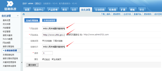 点击“添加友情链接”,就进入添加的界面,填写相应的信息
