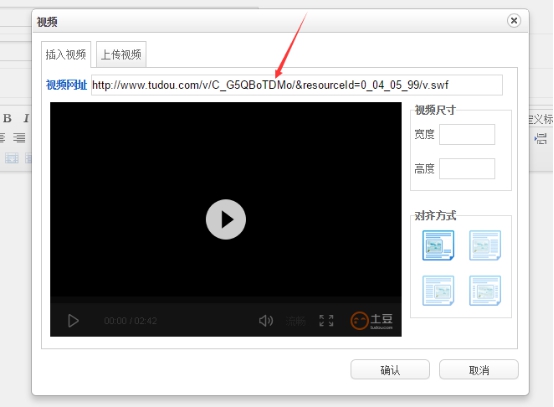 视频分为第三方视频和本地上传。一般网站上的视频都是通过第三方的形式上传,比如土豆、优酷这些视频网站,目前不支持腾讯视频。首先,您要先将视频上传到土豆,上传之后打开视频,比如:http://www.tudou.com/programs/view/C_G5QBoTDMo/
