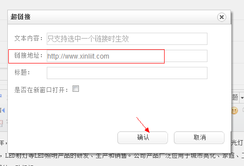 选中要添加链接的文字或者图片,然后点击链接按钮