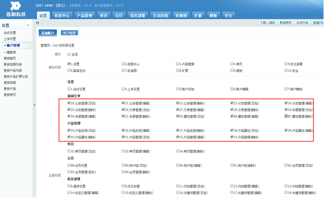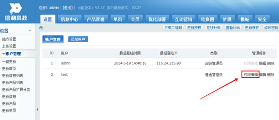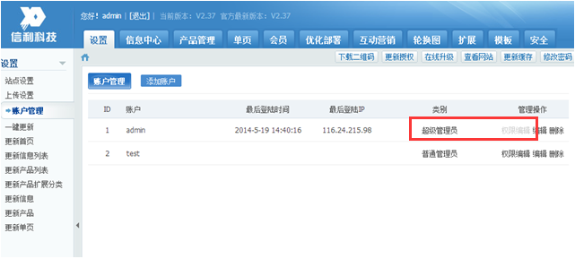 超级管理员的权限是最多的,具有网站后台所有的管理权限,可以编辑每个栏目,不需要单独去设置权限。