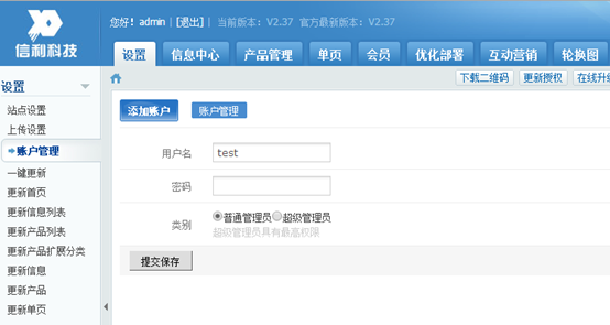 信利信息深圳网站建设系统后台自带设置多个管理员的功能,可以给各个网站管理员设置不同的管理权限,每个管理员只能操作自己有权限的模块,避免网站内容被随意修改。操作方法如下。