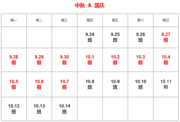放假时间:2015年09月27日至2015年10月07日。
