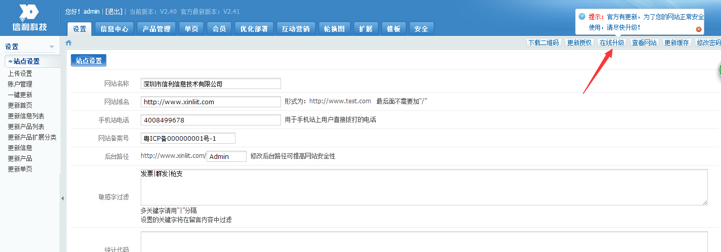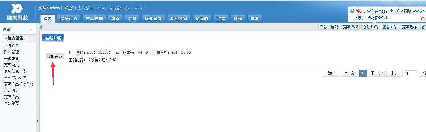 信利信息深圳网站建设系统升级至V2.41版本,请各位亲们及时升级,确保网站正常使用!