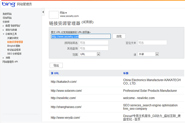 以前,我们在查询自己或者竞争对手网站的外链情况,都是使用YAHOO的外链查询工具。但从YAHOO将通道关闭后,我们就很难准确的分析外链了。在这里,深圳网站建设为大家分享使用Bing的外链查询工具来查询外链。