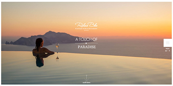 RelaisBlu 是一家地处意大利的高端酒店,他们的这个网站使用了三种不同的字体来进行排版设计。通常超过2种不同的字体用于一个页面会让人觉得混乱,这个这个网站不会,反而看起来颇为具有冲击力。