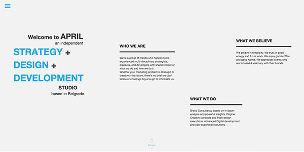 这个名为“What is your future”的网站同样设计精美,排版也颇为严谨。设计师很明显喜欢极简和扁平风,所用的字体Baron Neue 又是极具表现力的样式,在黑色的背景之下极为醒目,使得整个页面都炫酷起来了。撇开排版技巧不说,这字体都值得来一发吧?