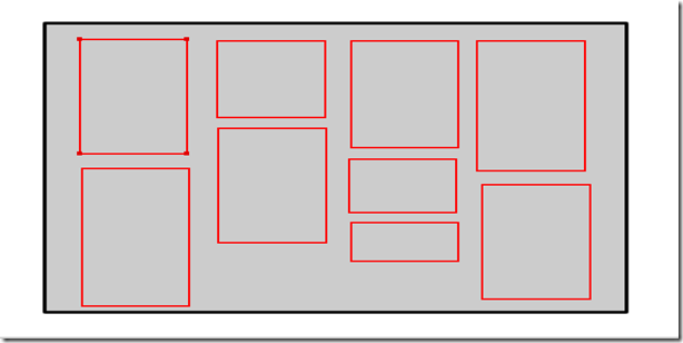 那么我们就来一步步的说明它是如何实现的,这个过程中也就理解了为什么是这样设计的了,首先,我们要在页面中排列出所要展示的框的个数,下面是这个瀑布流的结构图: