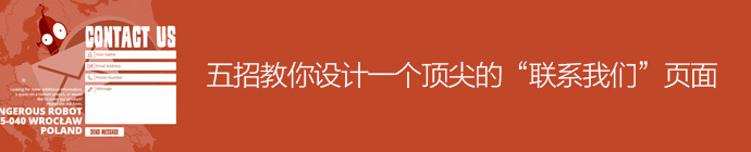 Dangerous Robot 网站的设计跟上一个不同,联系表格与其他元素通过明亮的暖色和矢量图案很好的融合在一起。联系表格基本采取居中模式,每个框里加上图标,使得辨识度和阅读速度得到提高。