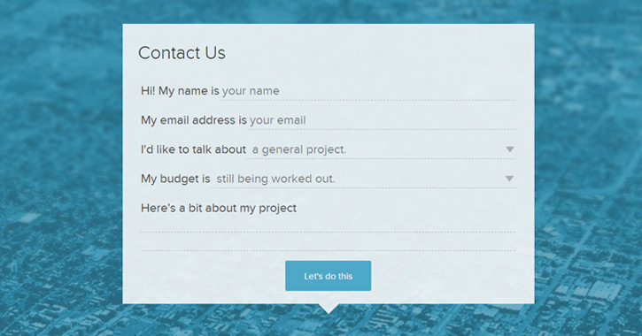 Underbelly是一个设计创意机构网站,联系页面很独特。显而易见,这个联系表格用了CSS样式表和JavaScript。输入界面看起来像一般正式文件的表格形式。设计独特整洁,让人觉得发送电子邮件也成了一种乐趣!