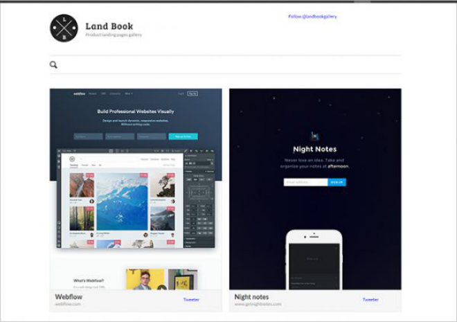 Land Bookt主要展示了网站登录页面的设计,它通过标签将大量的网站进行分类,便于用户搜索查看。