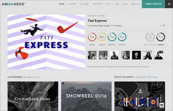 Awwwards 不仅仅是一个展示网页设计的网站,它邀请一些有地位的设计师、博客和机构组成一个多学科的评审小组对设计师的网页设计进行评分,大家可以查看获奖者及被提名人的作品,Awwwards 也会举办会议来嘉奖那些对网页设计做出贡献的获奖者,它也会帮助相关机构发布招聘信息。与此同时,Awwwards还拥有自己的网上商店用于售卖网页设计相关书籍。
