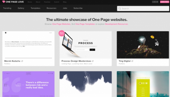 One Page Love是一个提供海量单页模版展示和素材资源的网站,是网页设计师寻找灵感和获取精美网页设计的站点,该网站成立于2006年,目前已收录30多种行业分类的模版。