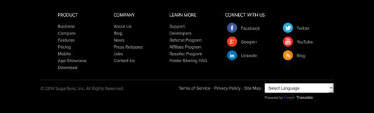 另外,当用户浏览到你的页脚的时候,给他们一些可做的事情。包括登记获得邮件通知,或者邀请他们在社交媒体上关注你。不要忘了这个区域在转化点击方面的价值。