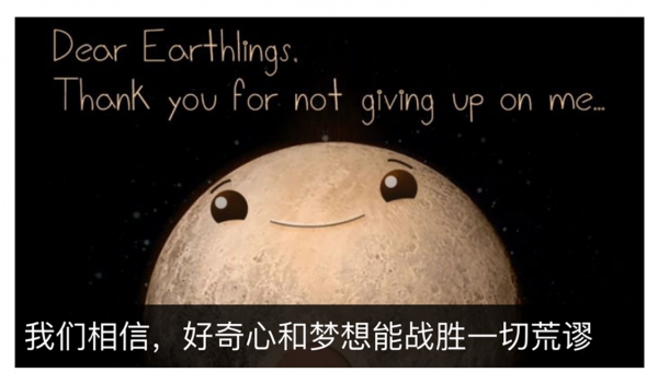 7月15日 那天,我们考虑再三,发了一篇抓冥王星热点的《我们相信,好奇心和梦想能战胜一切荒谬》。文章大体是号召大家去保持好奇心,去敬畏那些美好的东西。说老实话,当时心里非常没有底,做好第二天收获惨淡阅读数的准备。
